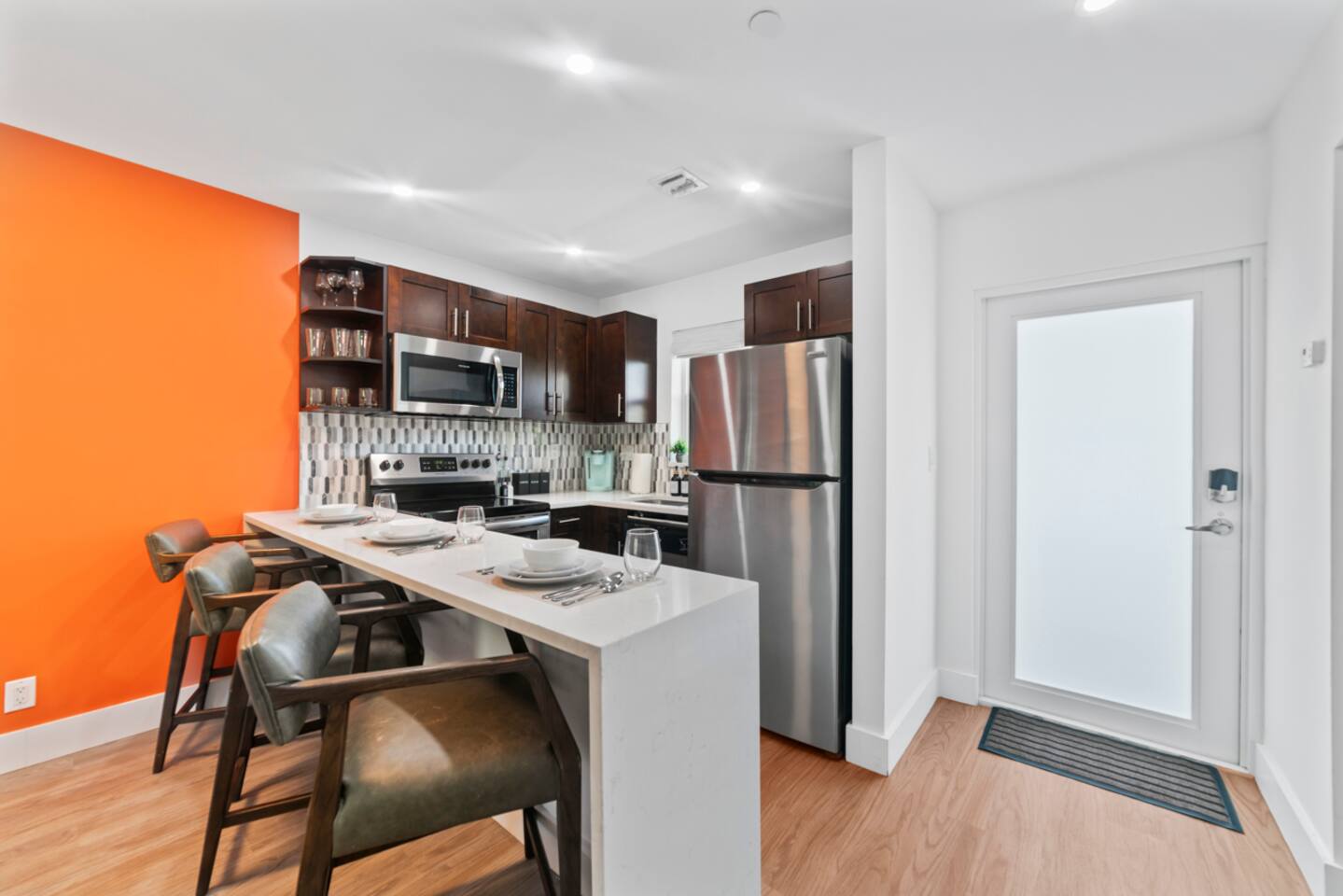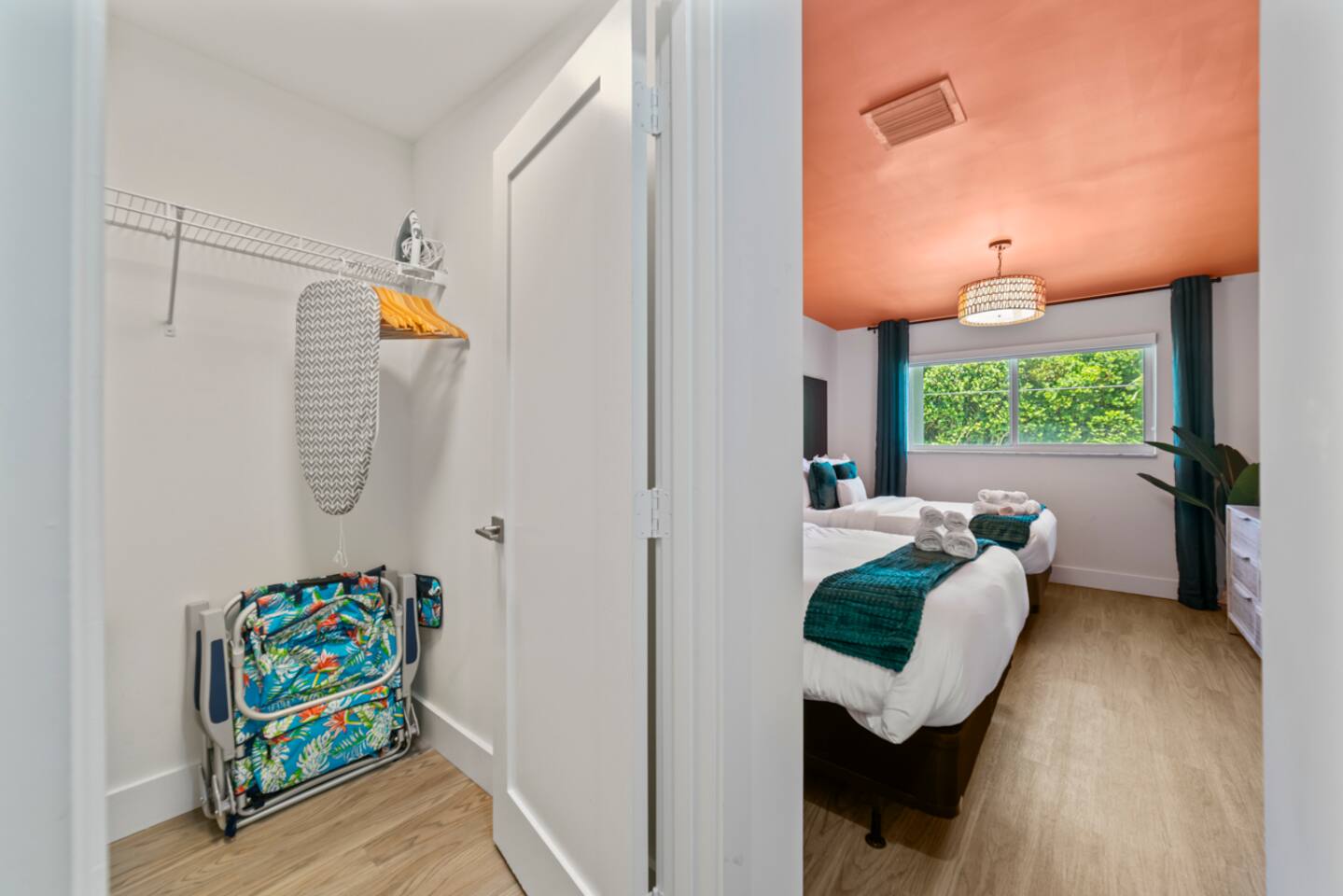 ✨The Space Comfort & Convenience ➤ Sleeps 4 in beds + 2 on pull-out sofa ➤ Two double beds with premium linens and blackout curtains for restful sleep ➤ Pull-out sofa (sleeps 2 adults or children) with second Smart TV for downtime ➤ Walk-in closet, dresser, iron & ironing board ➤ Central A/C & heat for year-round comfort Kitchen & Dining ➤ Full kitchen: fridge, stove, oven, microwave, dishwasher ➤ Coffee & tea: Keurig with pods, kettle, toaster, cookware, dishes, utensils, and wine glasses (obviously!) included ➤ Pantry basics provided (salt, pepper, oil) Bathroom ➤ Shower + tub with hot water ➤ Plush towels, including makeup towels ➤ Shampoo, conditioner, body wash, hair dryer Tech & Work-Friendly ➤ Fast Wi-Fi ➤ Two Smart TVs ➤ Washer & dryer with detergent provided ➤ Self check-in for a stress-free arrival 🌴 Outdoor & Shared Amenities ➤ Shared pool & hot tub (used by guests) ➤ BBQ grill & outdoor seating area ➤ Outdoor shower for rinsing after the beach ➤ 2 Tommy Bahama beach chairs, umbrella and towels included ➤ Shared EV charger in parking area (first-come, not guaranteed) 📍 Location Highlights ➤ Across the street from South Beach Park via short path ➤ Quieter than Boca’s main beaches ➤ Mizner Park, Red Reef Park, Town Center Mall, Boca Raton Resort ➤ FAU just minutes away ➤ Airports: Boca Raton (5 mi), FLL (27 mi), PBI (27 mi), MIA (48 mi)