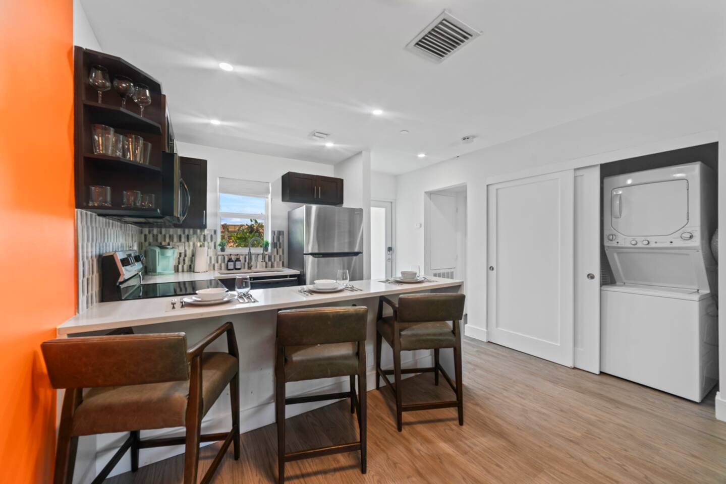 ☀️ Guests have full, private access to the entire 1-bedroom suite, including all amenities detailed above (kitchen, bathroom, laundry). Shared Amenities: Guests are welcome to enjoy the building's shared outdoor amenities, including the: Outdoor Pool & Hot Tub BBQ Grill & Seating Area Outdoor Shower Host Storage: Please note the only area off-limits to guests is the white locked owner's cabinet located in the closet.