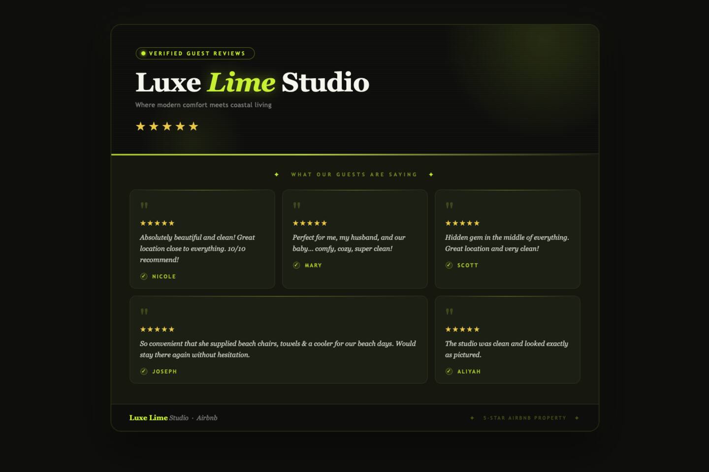 Modern coastal style meets total comfort. Feel the breeze under lofty vaulted ceilings or dial in your perfect temperature with the mini-split AC. It’s bright, airy and always cool—the perfect retreat after a day on the Gulf. 🛏️ The Sleep Experience: Drift off on a Plush King-Size Bed with premium linens. The oversized walk-in closet means you can tuck your suitcases away and truly feel at home. 🍳 Smart Kitchenette: Save on dining out! Fully equipped with a portable induction cooktop, microwave, Keurig (pods on us!), blender for smoothies/margaritas, and a cocktail shaker for sunset drinks. 🚿 Spa-Inspired Bath: Features a rainfall shower, LED vanity mirror for perfect lighting, plus towels (makeup towels provided) and high-end toiletries (shampoo, conditioner and body wash). 💻 Stay Connected: High-speed Wi-Fi and a Smart TV make this an ideal spot for digital nomads or movie nights. 🏖️ Your "Beach Day" Simplified: Don't pack the bulky stuff. We provide everything you need for the perfect day at Coquina or Manatee Beach (Beach Chairs, Umbrella, Cooler & Beach Towels) Pro Tip: Take the Gulf Islands Ferry (only 5 minutes away) to skip the bridge traffic and arrive at the beach relaxed! 🌳 Outdoor & More: Enjoy the Florida sunshine in our fenced backyard. Perfect for a morning coffee or a game of cornhole. 📍 Nearby Beaches: 12 mins • Bean Point • Coquina Beach • Bradenton Beach • Manatee Beach 📍 NearbyAttractions: • Gulf Islands Ferry – 5 mins • IMG Academy – 9 min • LECOM Park – 4 min • Bradenton Riverwalk – 5 min • St. Armands Circle – 22 min • Downtown Sarasota – 20 min Why Guests Love "Luxe Lime": ✅ King Bed: Rare for studios in this area! ✅ The Ferry Advantage: The easiest way to see AMI. ✅ Pristine Clean: Dedicated professional cleaning & pest control. ✅ Free Parking: On-site spot for 1 vehicle.