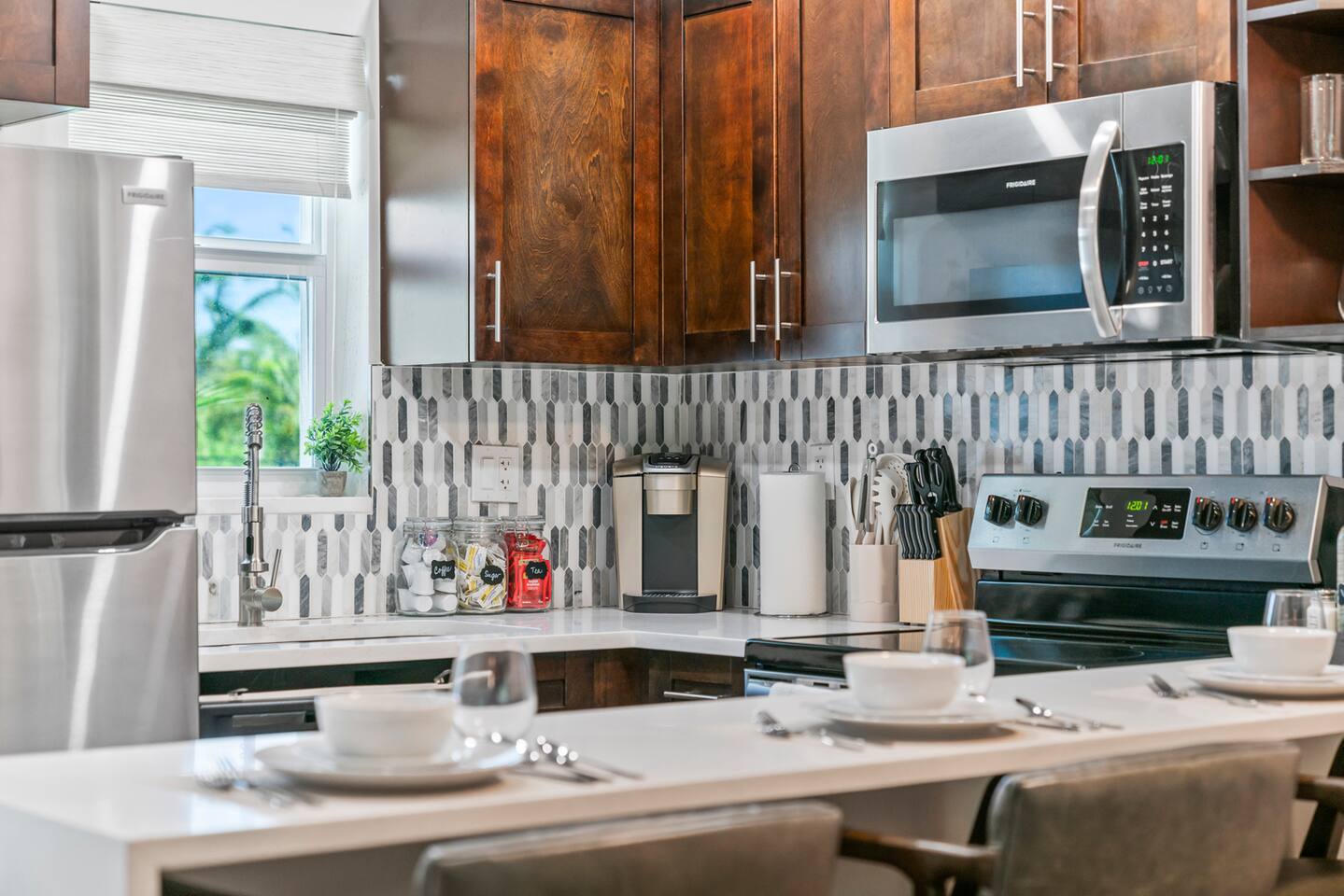 ⭐ Comfort, Location & Convenience 📍 Location Highlights ✦ Beach Access: Across the street from South Beach via a convenient path from the property to the beach ✦ Beach Vibe: Quieter than Boca’s main beaches while still centrally located ✦ Nearby Attractions (2–5 mins): Mizner Park, Gumbo Limbo Nature Center, Sugar Sand Park, Red Reef Park ✦ Education/Business: Minutes to Florida Atlantic University (FAU) ✦ Shopping: Town Center Mall (5.3 miles) ✦ Airports: • Boca Raton Airport (private aviation) • Fort Lauderdale (≈20 mins) • Palm Beach (≈30 mins) • Miami (≈45–60 mins) 🌴 Shared Outdoor Amenities ✦ Shared Pool & Hot Tub (used by building residents and guests) ✦ Lounge seating for relaxing outdoors ✦ BBQ grill & alfresco dining area — perfect for sunset meals ✦ Outdoor shower for rinsing off after the beach ✦ Beach gear included: 2 Tommy Bahama chairs, beach towels, and umbrella 🛏️ Bedroom & Storage ✦ King-size bed with luxury linens and plush pillows ✦ Blackout curtains and extra blankets for restful sleep ✦ Walk-in closet, dresser, hangers, iron & ironing board 🍳 Full Kitchen & Living Space ✦ Full kitchen with fridge, stove, oven, microwave & dishwasher ✦ Morning Fuel: Keurig + pods, tea, sugar & creamer included for your morning win. ✦ Toaster, kettle, wine glasses (obviously!), cookware, dishes & cooking basics ✦ Living room with pull-out sofa (sleeps two) and second Smart TV for downtime 🛎️ Work-Friendly & Practical Features ✦ High-speed Wi-Fi for streaming/Zooming or remote work ✦ Two Smart TVs (just add popcorn 🍿) ✦ Washer & dryer with detergent provided ✦ Easy self check-in ✦ Central A/C & heat ✦ Free dedicated parking space (no circling!) ✦ Shared EV charger in parking area for eco-friendly rides (first-come, not guaranteed) ✦ Security cameras located only in exterior common areas and parking — no cameras inside the unit 🚿 Bathroom ✦ Shower/tub combo with hot water ✦ Fresh bath towels and makeup towels ✦ Shampoo, conditioner, body wash & hair dryer ♿ Accessibility Notes ✦ Designated parking and well-lit access ✦ Step-free entry to the apartment ✦ Pool and hot tub hoist available upon request (Please note: property is not fully ADA-compliant)